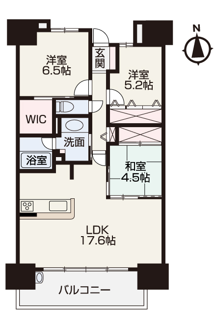 • LDK広々約17.6帖+和室4.5帖の続き間!