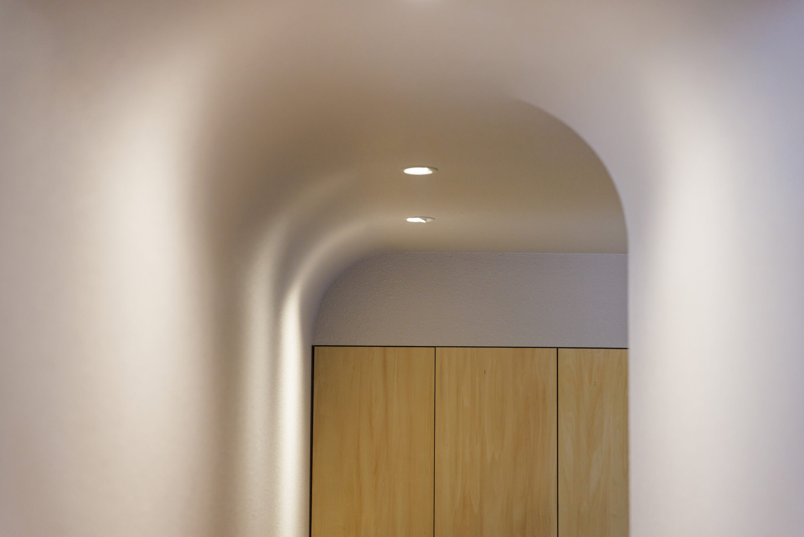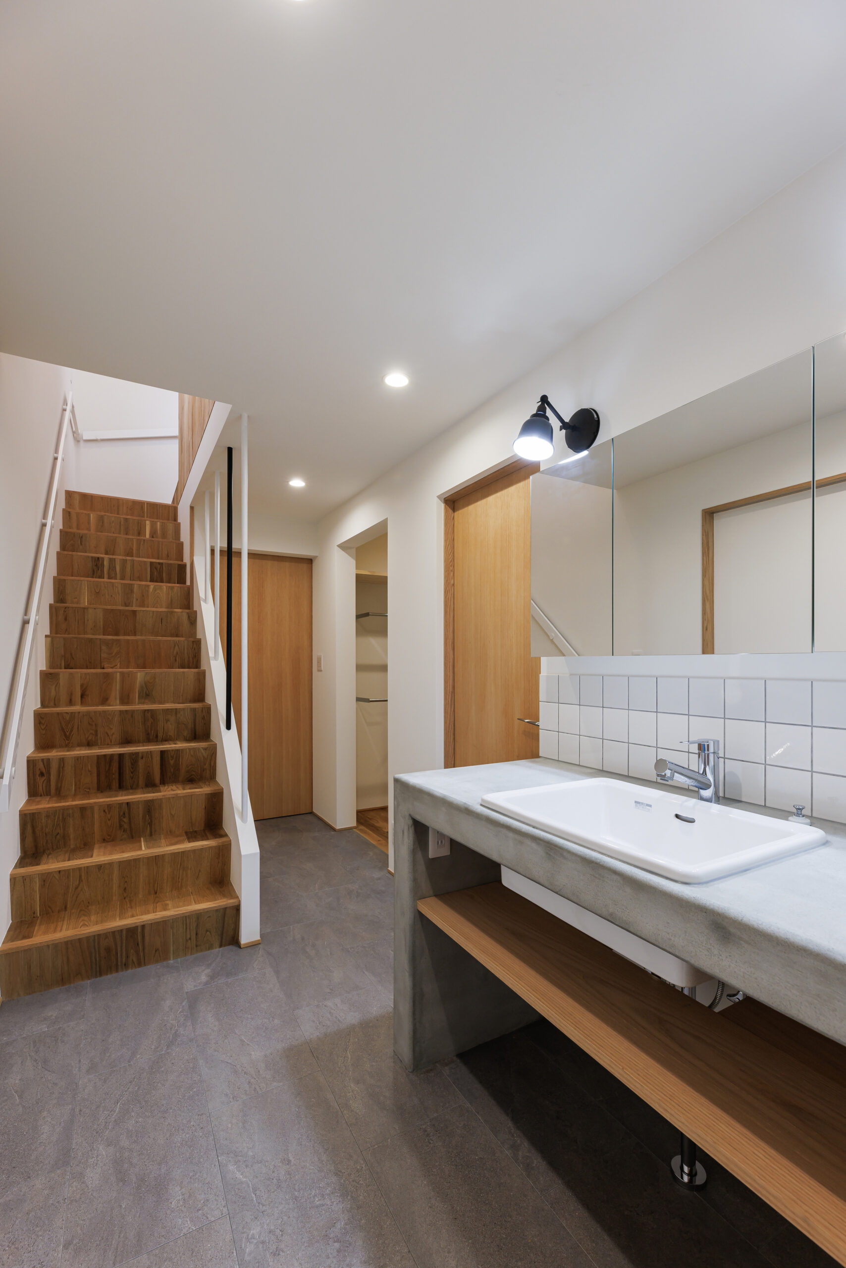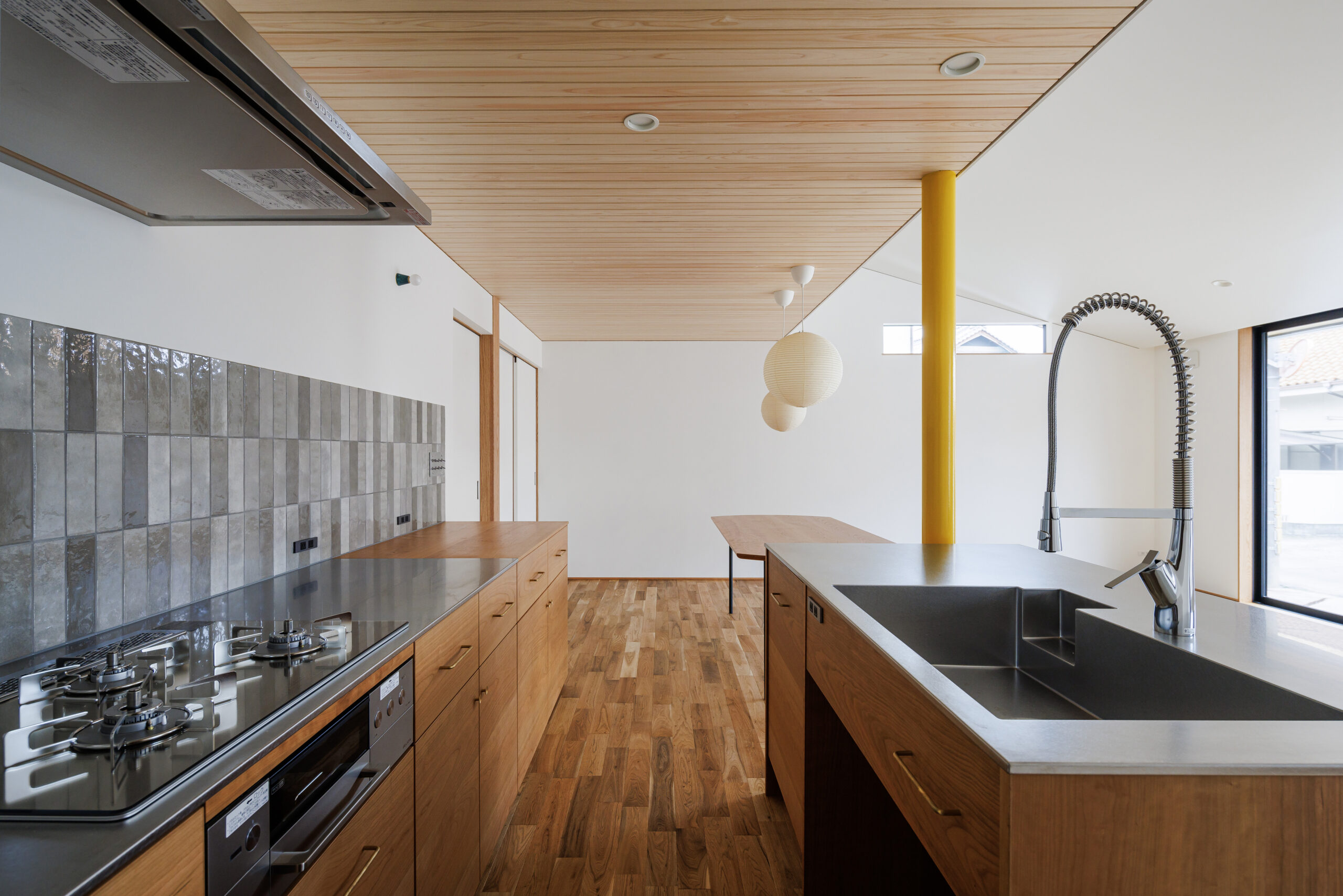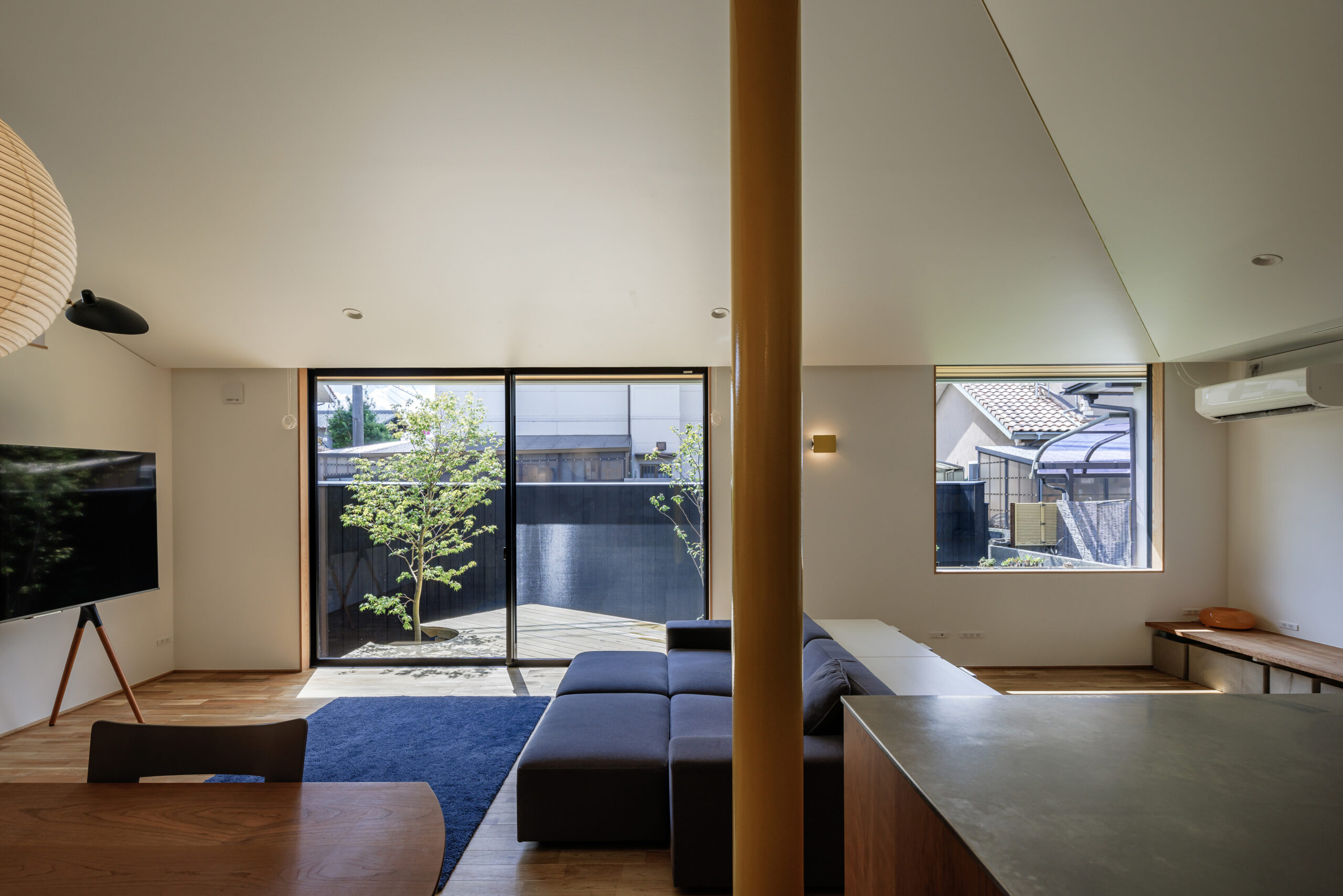 お客様の日当たりのよい広いリビングをという要望で広さもあり庭を活かした開放感のあるプランをご提案。店舗兼住宅とのことでご家族のスペース、店舗のスペースを互いに気兼ねなく過ごせる住宅を設計しました。生活感を隠しつつキッチンを中心に家事同線を確保しています。インナーガレージがあるので小さなお子様がいても買い物帰りでも雨に濡れず室内へ入れます。また庭の板塀の高さをとることで外部からの視線もカット。周りを気にせずゆったりくつろげます。