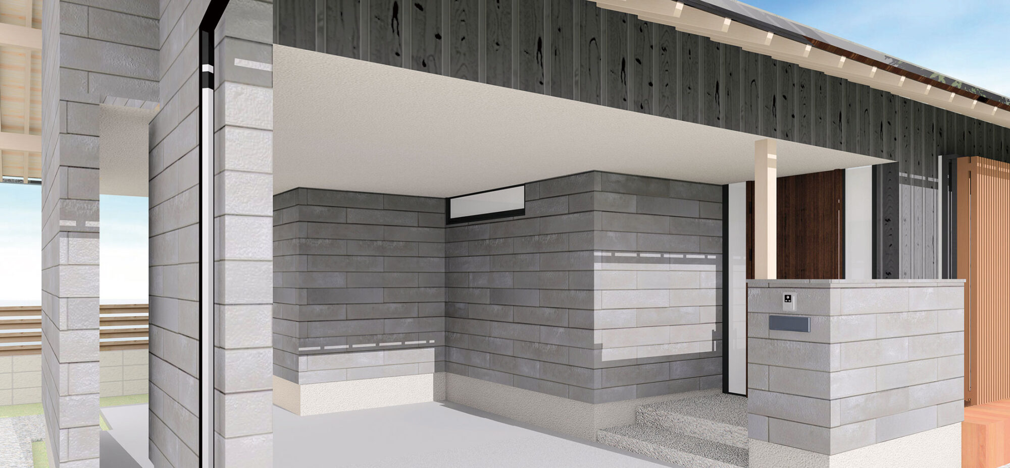 ■外壁にタイルと焼杉を施工したシンプルで重厚感のある外観