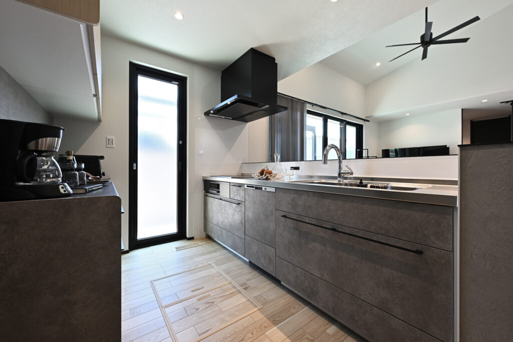 ブラックテイストでスタイリッシュな機能充実のキッチン