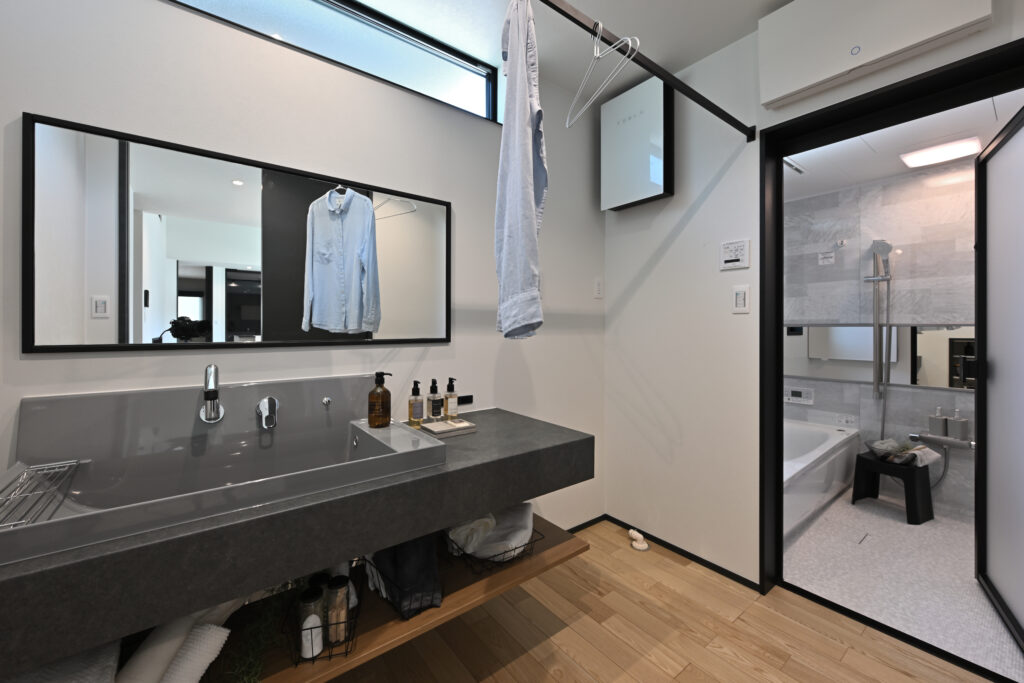 洗面所は、洗う→干す→しまうが1か所で完結するスペース