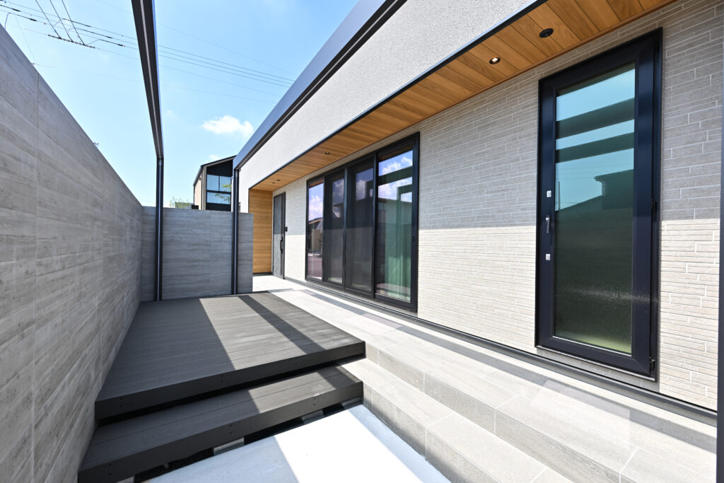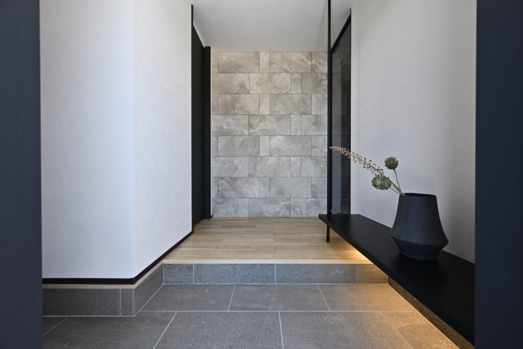 玄関はエコカラットを使用したデザイン空間