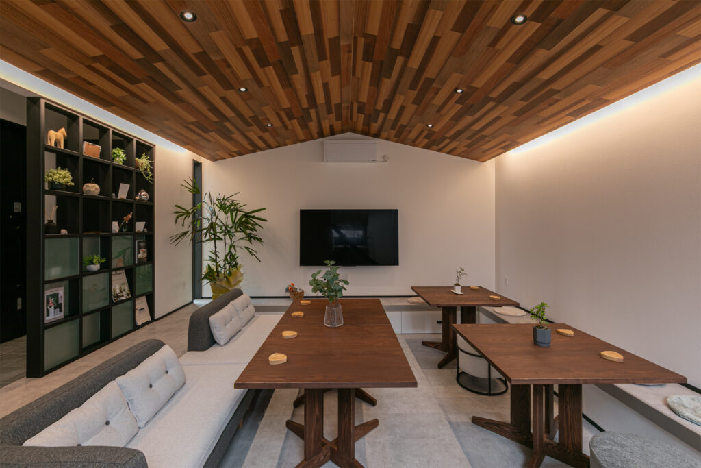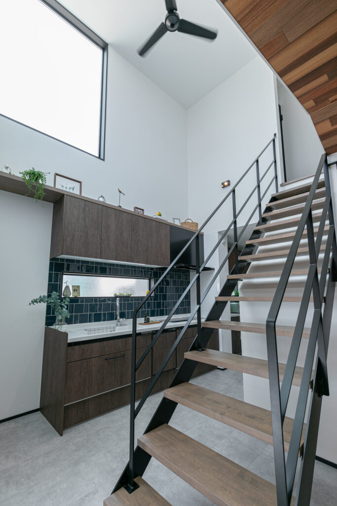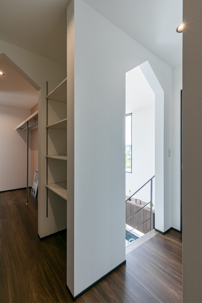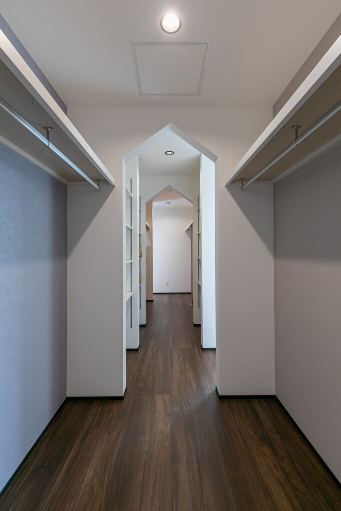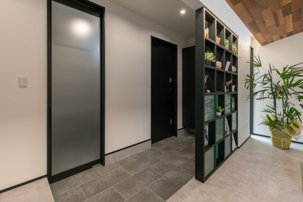 玄関(右側)から繋がる土間収納は洗面脱衣室(左側)にも繋がっています