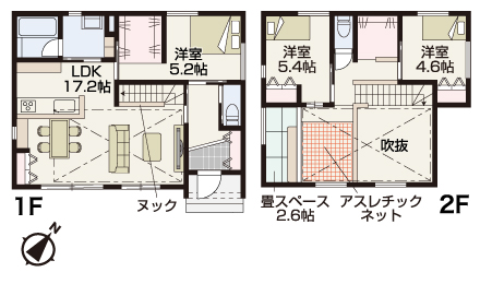 2階吹き抜けには、大人も子供も楽しめるアスレチックネットを設置