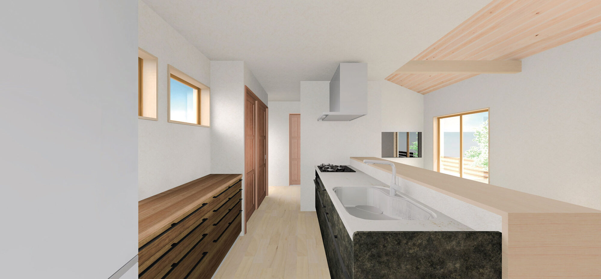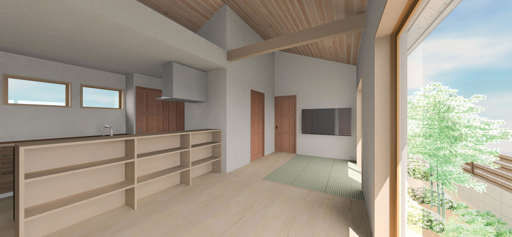 キッチンからLDKと庭が見渡せる設計。会話しながら調理が楽しめます。