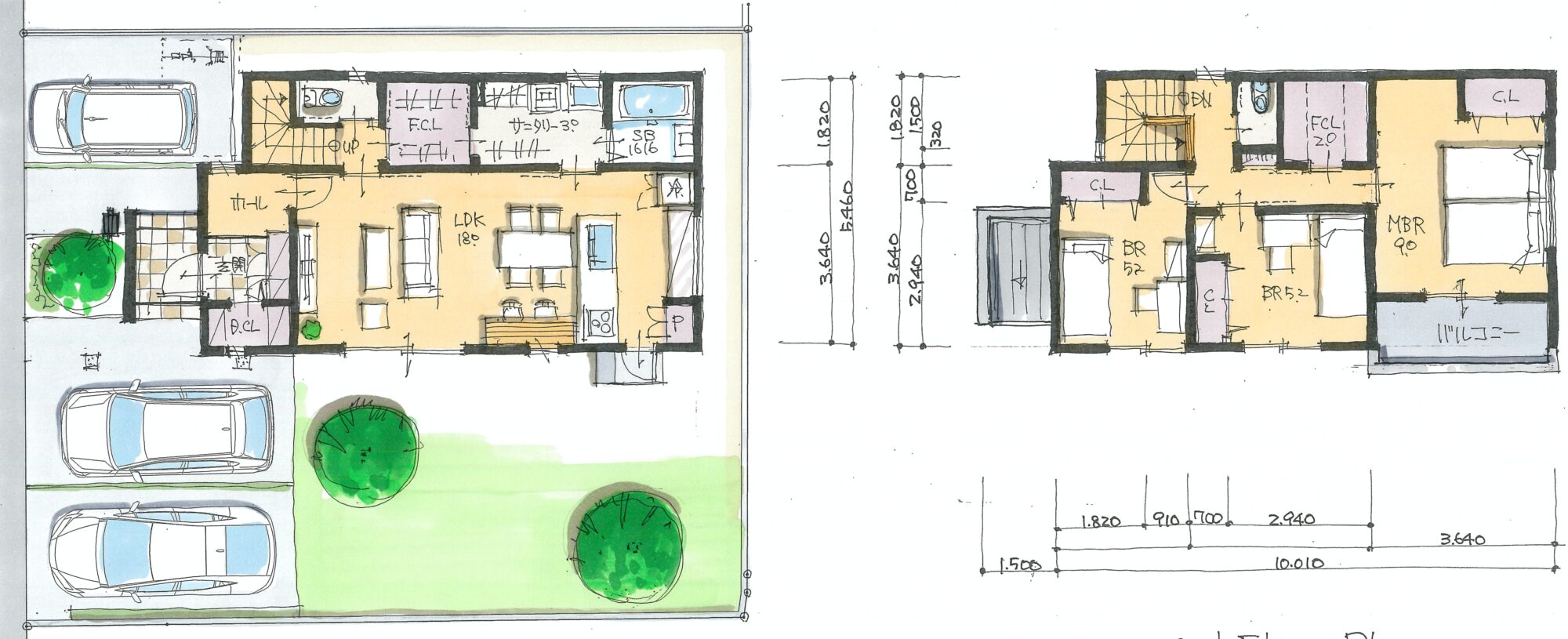 ①号地102.67㎡(31.05坪) ②号地105.16㎡(31.81坪)