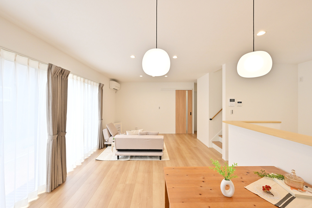 新着LDKに面した南庭でアウトドアを楽しめる家