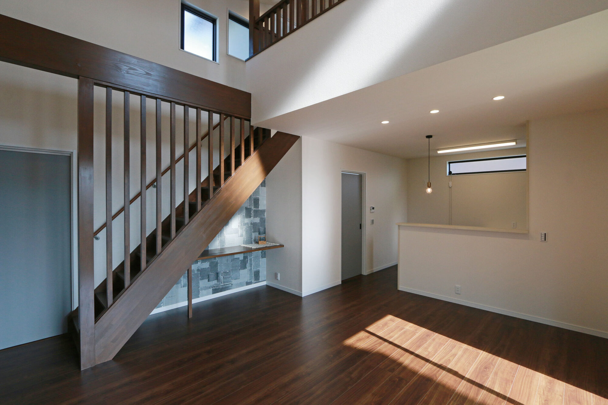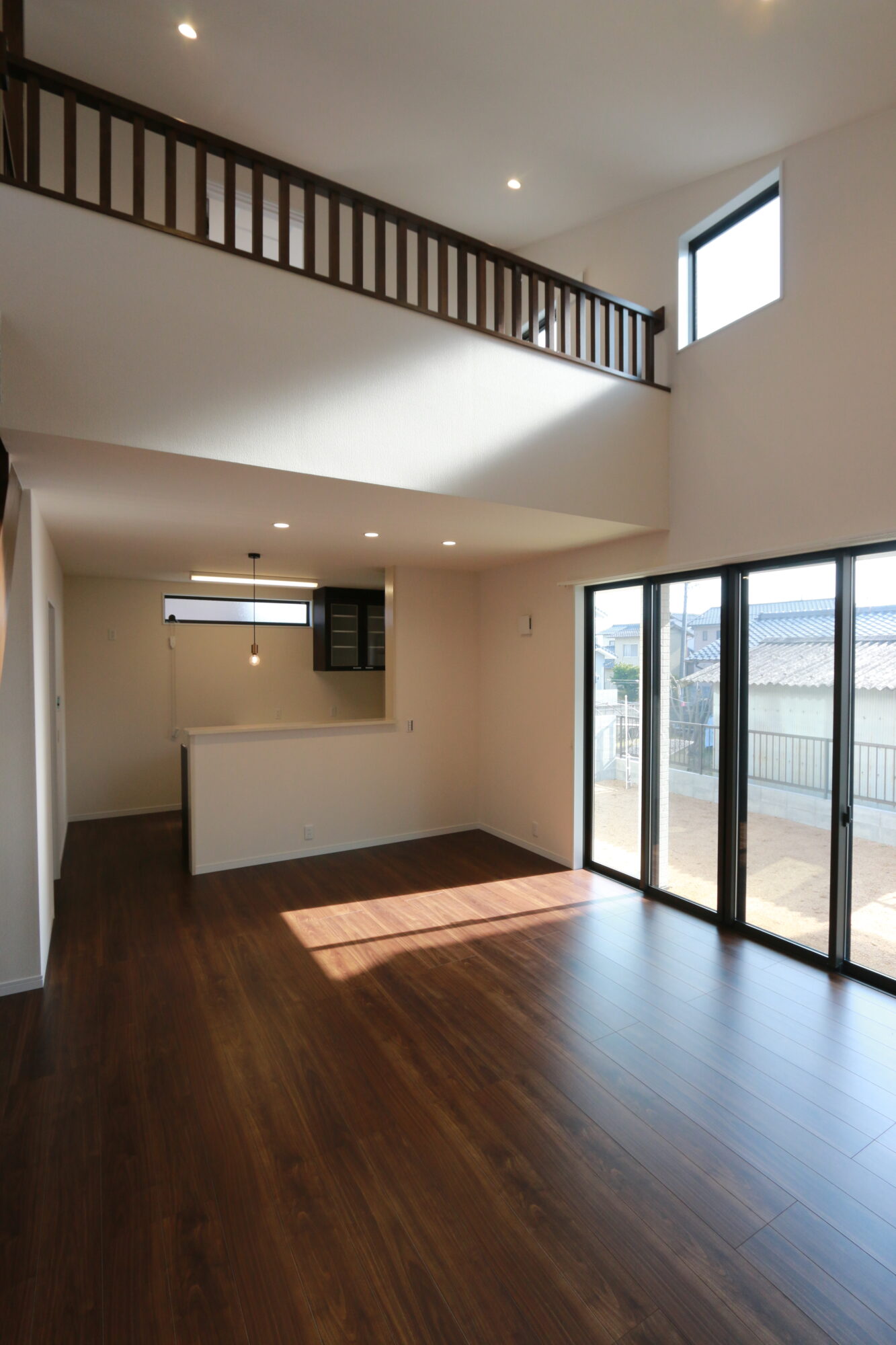 • リビングには開放的な吹き抜けで2階と繋がります!