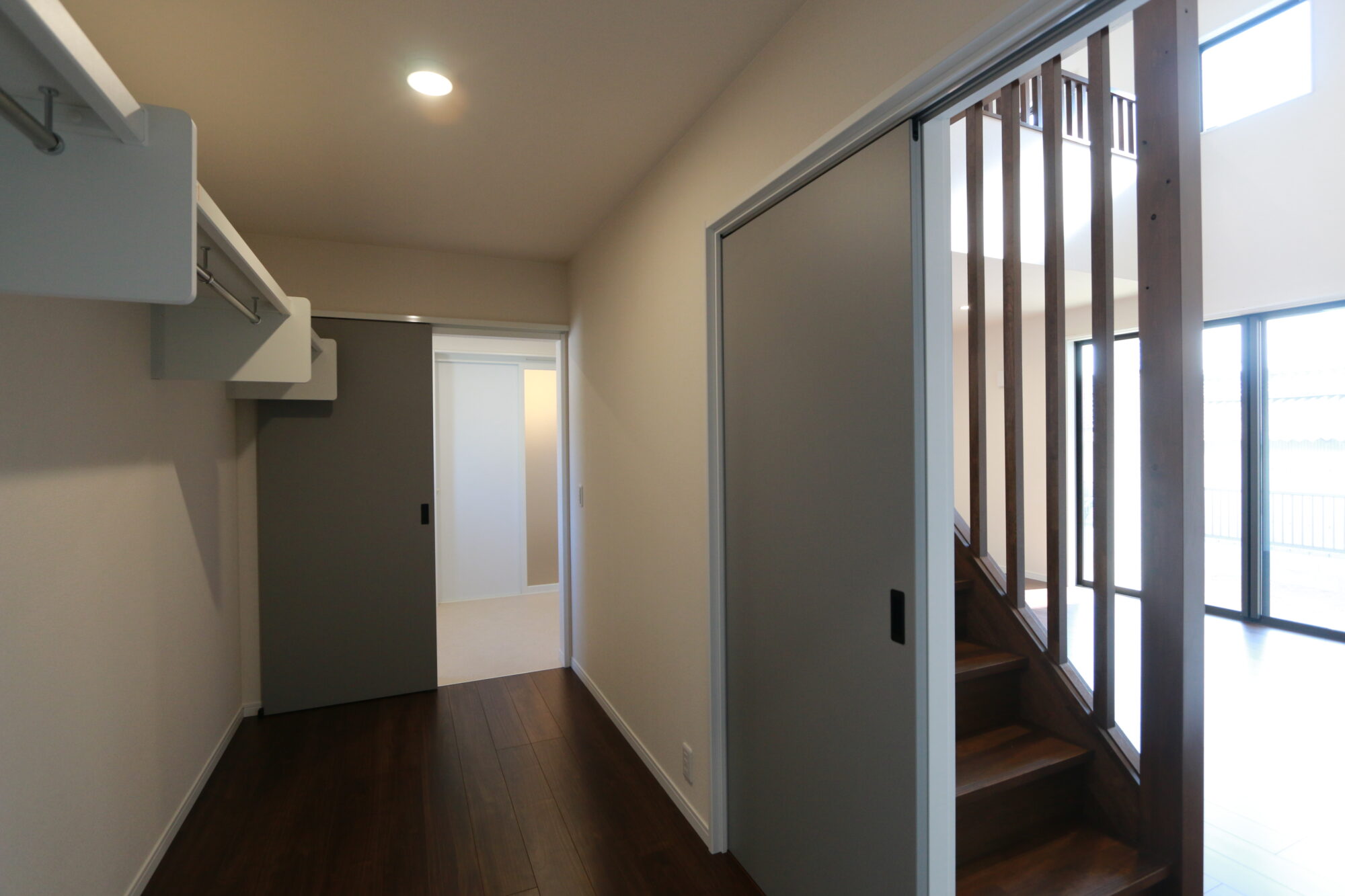 • 玄関からWTC(ウオークスルークローゼット)を通って洗面室・LDKに回遊できる動線!