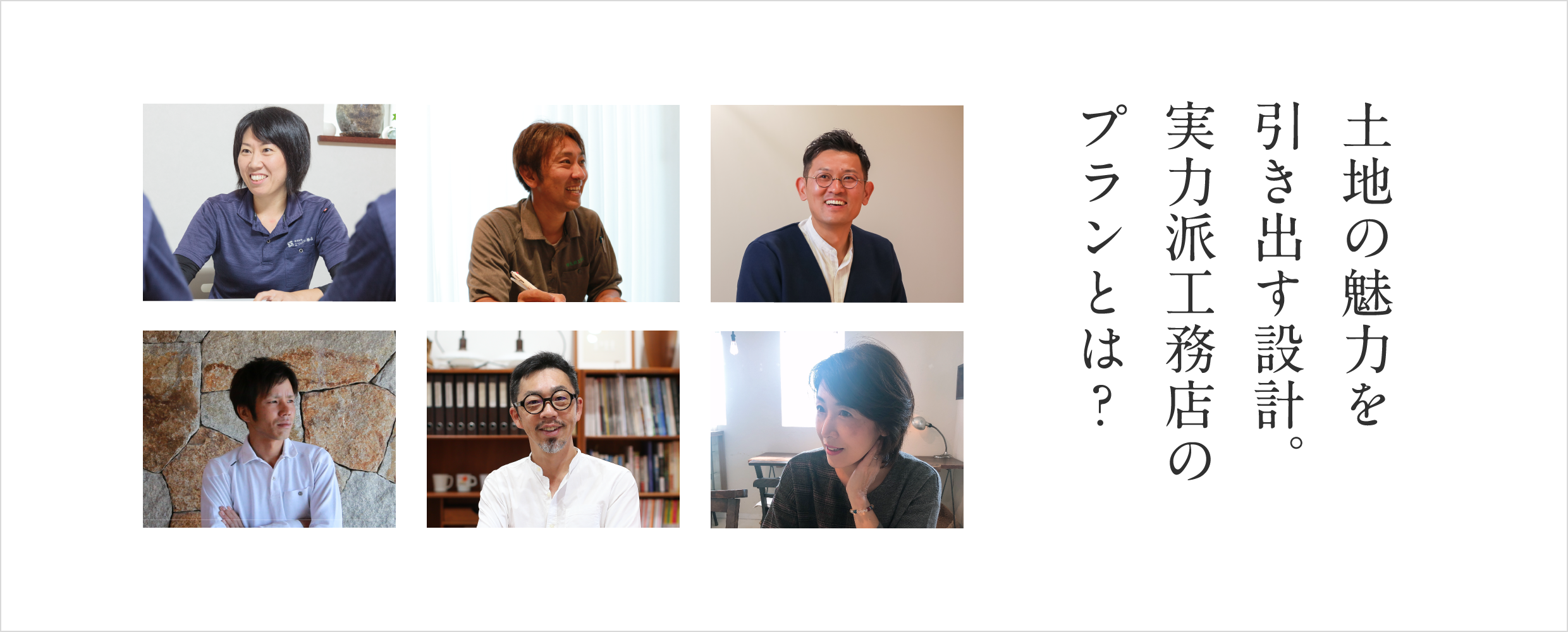 「ここを知らずに家づくりをするのはもったいない」と思ってしまう、設計・デザイン・経験を兼ね備えた実力派工務店6社の紹介と、その6社に「実際に存在している土地」と「モデル家族の要望」を渡し、それぞれの土地のポテンシャルを最大限活かした「設計×デザイン」を提案してもらいました。